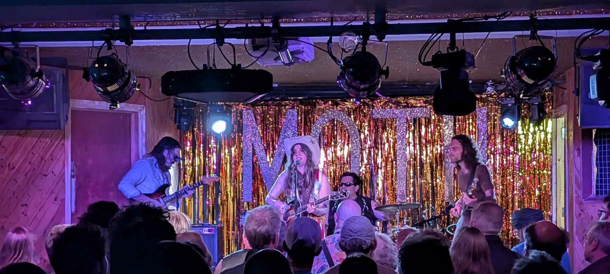 London's Moth Club spoke to me. I mean the very fabric of the building. I was stunned. I walked off a quiet street into a working men's club in broad daylight but was transported, once inside, into David Lynch's Roadhouse at night with no windows. I sent a photo of the red stage with its gold backdrop and its vaulted ceiling decorated with gold glitter to Calmer Sounds and she immediately sent back a GIF of the Roadhouse. I was in Twin Peaks and it was a shock. And it linked Pearl's music back to David Lynch. Suddenly pennies / nickels started dropping.